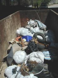 Three hours and a partial-dumpster-full of trash later, the view from the roadway was greatly improved. And yet, there is still plenty of garbage left for a future cleanup. The northwest section extends back several hundred yards, all the way to the Shaw's Plaza parking lot. With a cleanup, many hands really do make light work. Consider joining us next year, and help improve some overlooked corner of our neighborhood. To organize a cleanup in your own neighborhood, contact Groundwork Providence. |